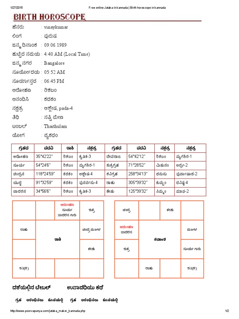 Astrology in Kanada: Get Your Free Horoscope in Kannada [ಜಾತಕ ... Yes, your online jataka in the Kannada is the same as the horoscope made through traditional methods, so it can help you resolve any life issues you face due to doshas in your life. The presence of Doshas (malefic planets) in either of the 12 houses can impact your life in unique ways.